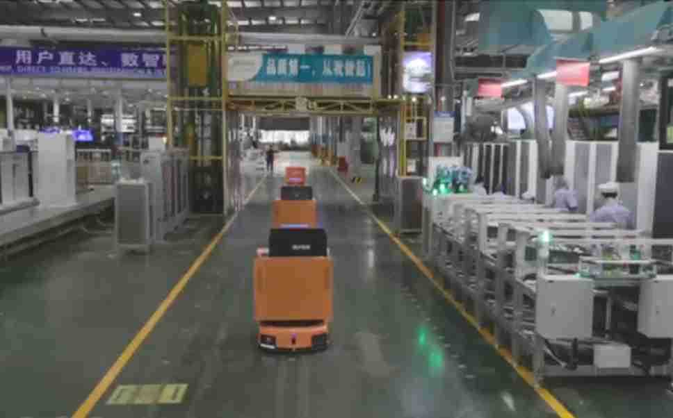 为车载冰箱物流配送打造的智能解决方案,,,包含产中物流通过潜伏举升AMR搬运至线边,,,,产后成品物流智能仓储,,流程包含产中物流智能齐套入库,,,,线边安灯叫料AMR智能配送至线边,,,,成品入库、、出库,,,,通过无人堆高车机器人,,,,智能仓储管理替代人工作业管理,,,,实现更高存储、、、更高效率、、、、更具柔性化的解决方案。。。。